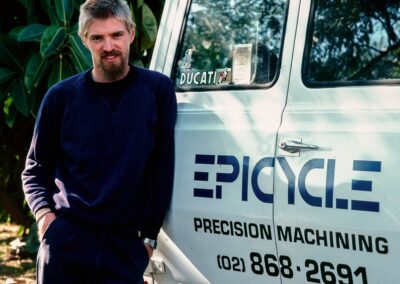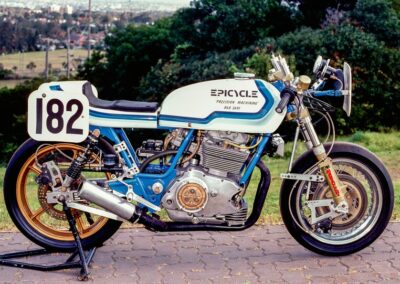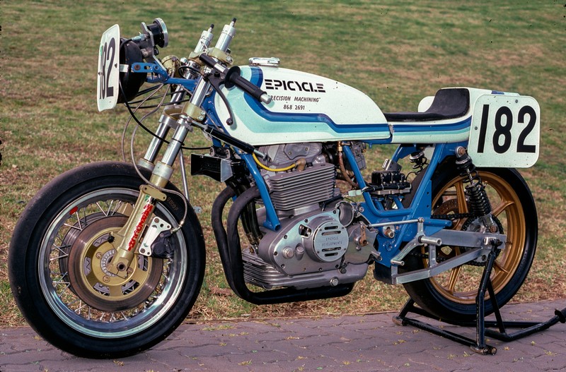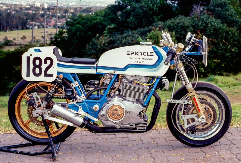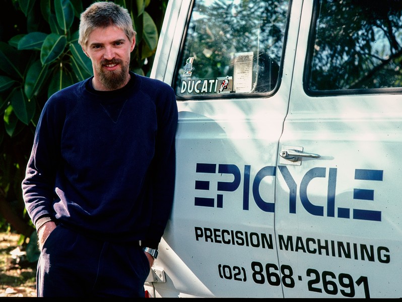 Motorcycling NSW 1980s Epicycle (1985) Pete Smith designed and fabricated parts in his home-based workshop, Epicycle. His workshop was brimming with all manner of machinery. Pete was a tuner and builder of some innovative racers. Epicycle KTT Services La Guzzi Pr Products Top Paul Watkins Photography, Copyright 2026